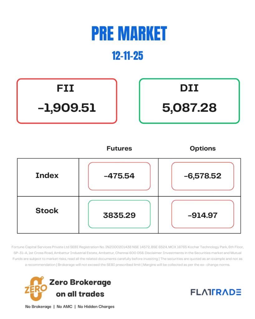 Gift Nifty indicates a flat start for the broader index in India, with a drop of 7 points or 0.03 percent. The Nifty futures were trading around the 25,949.50 level. Wall Street’s main indexes were mixed on Wednesday, with the Dow notching a record-high close and the Nasdaq losing ground as investors rotated out of pricey technology stocks while focusing on a likely end to a historic U.S. government shutdown.