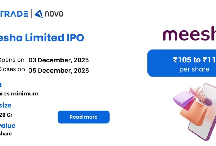Meesho IPO is a bookbuilt issue of ₹5,421.20 crore. It combines a fresh issue of 38.29 crore shares aggregating to ₹4,250.00 crore and an offer for sale of 10.55 crore shares aggregating to ₹1,171.20 crore.The IPO opens for subscription on ...