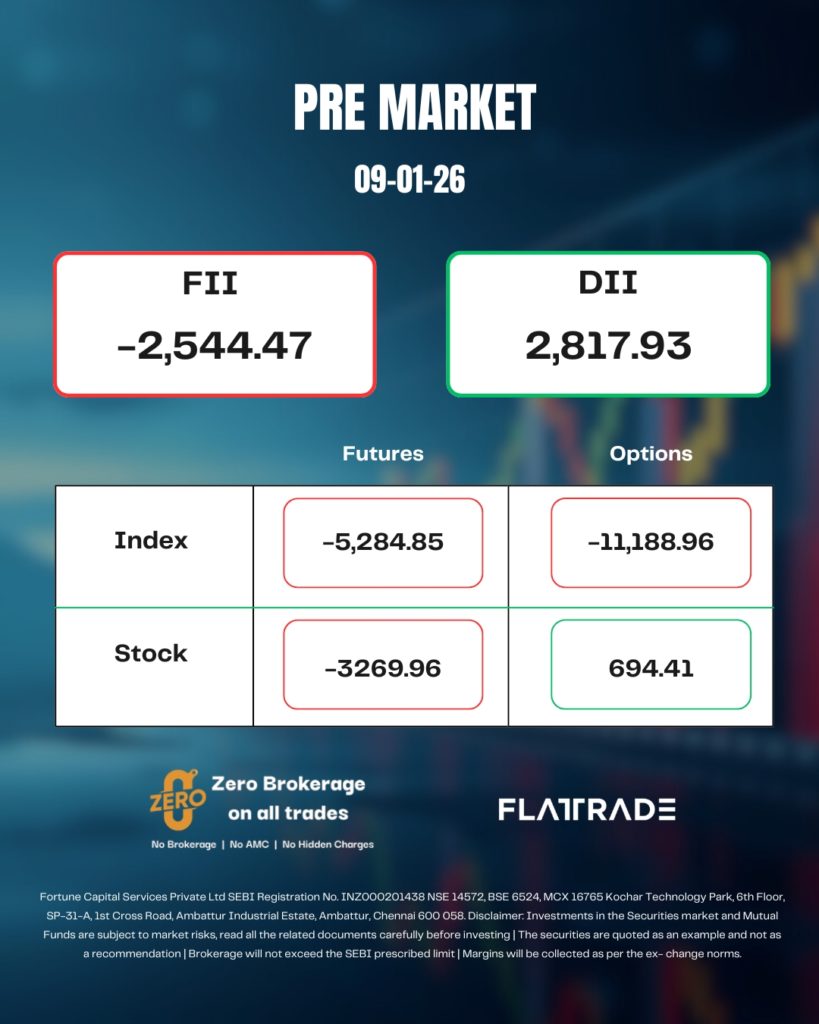 Gift Nifty indicates a flat to positive start for the broader index in India, with a gain of 33.50 points or 0.13 percent. The Nifty futures were trading around the 26,003 level.
