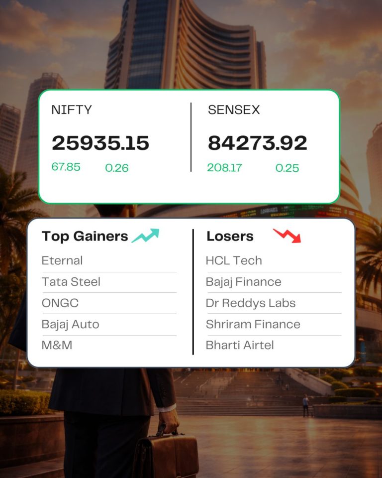 The top gainers on the Nifty included Eternal, Tata Steel, Bajaj Auto, ONGC, and M&M, while the laggards were Shriram Finance, HCL Tech, Dr Reddy’s Labs, Bajaj Finance, and Bharti Airtel.