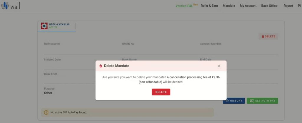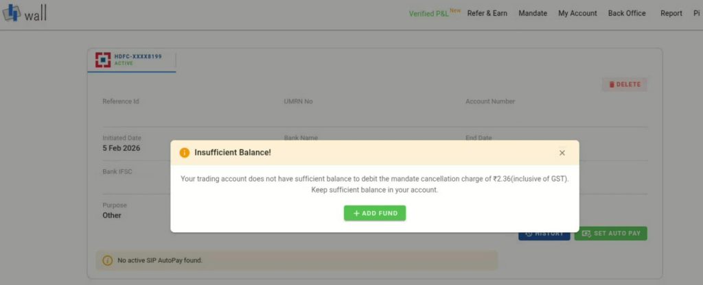 Ensure your trading account ledger has ₹2 + GST available for the mandate cancellation charge.